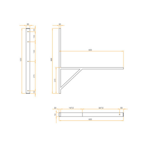 Wspornik składany z belką montażową Ivensis IWL550 550mm