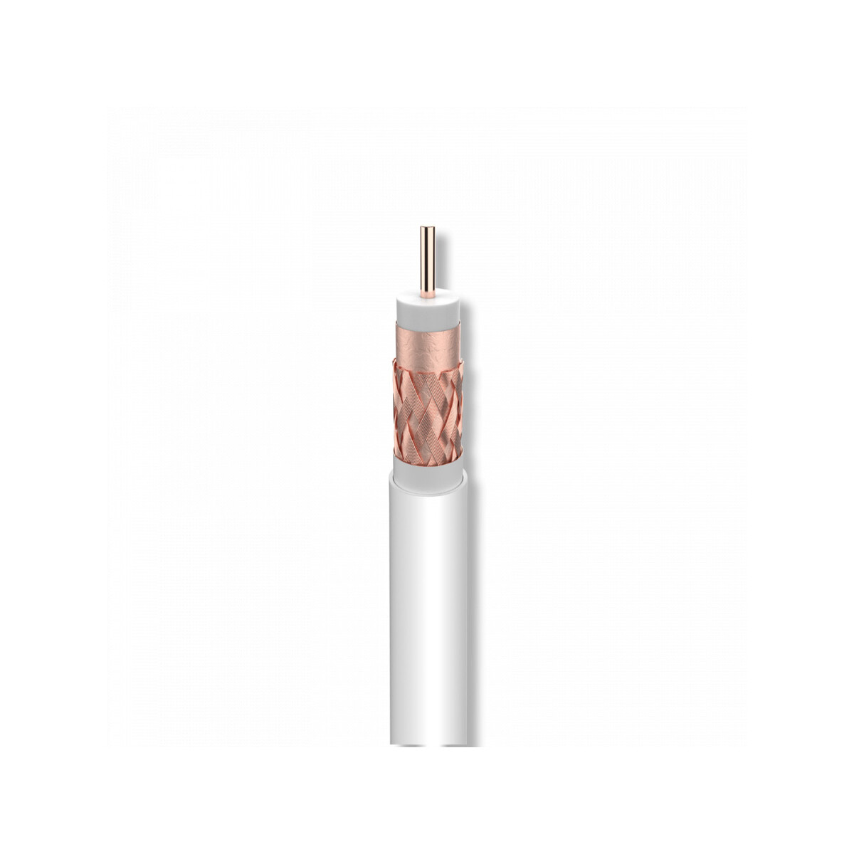 Kabel koncentryczny RG-6 z żyłą miedzianą i miedzianym oplotem (Cu/Cu) o 73% pokryciu. Kabel 16VAtC, podwójne ekranowanie, osłona zewnętrzna: PVC.