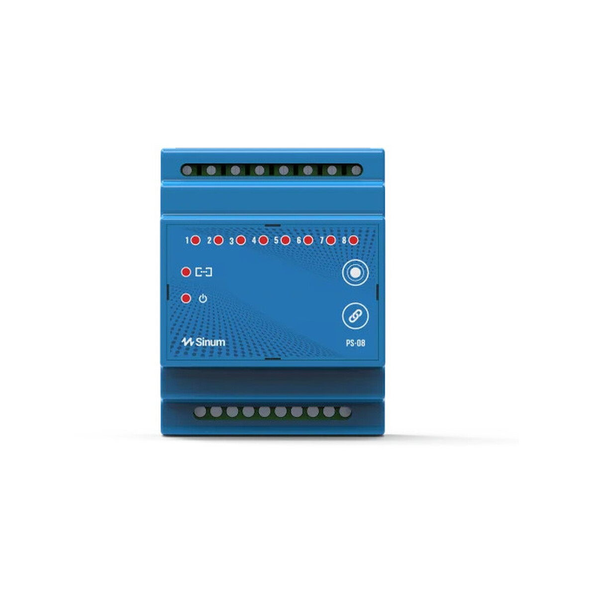 PS-08 jest urządzeniem, które dedykowane jest wszystkim tym, którzy lubią mieć wszystko poukładane w jednym miejscu – np. w szafie rozdzielczej. PS-08 ma 8 przekaźników – wyjść beznapięciowych i montuje się go na szynie TH35 podłączając do niego obwody, urządzenia bezpośrednio za wyjściem z bezpiecznika. Istnieje możliwość podłączenia do 8 urządzeń. PS-08 komunikuje się z centralą Sinum bezprzewodowo. Po podłączeniu PS-08 otrzymamy możliwość niezależnego sterowania danym punktem zasilania/oświetlenia zarówno przy pomocy aplikacji mobilnej jak również manualnie poprzez włącznik ścienny. Po dodaniu i zaprogramowaniu PS-08 w centrali sterującej Sinum istnieje możliwość zdalnego sterowania, dodawania scen, akcji oraz ustawienia harmonogramów.