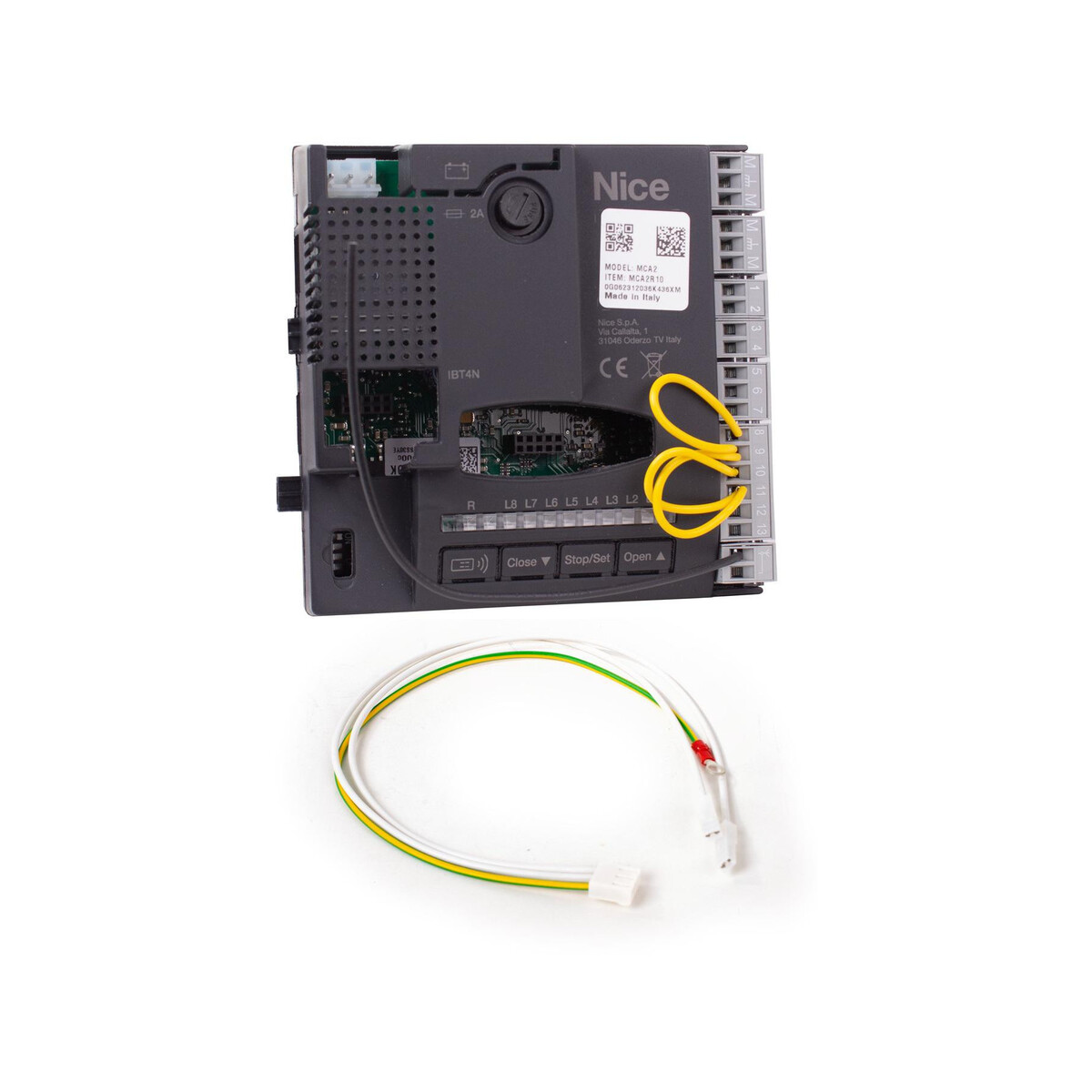 Płyta sterująca MCA2R10 jest częścią kompletnej centrali MC424R10. Jest przeznaczona jest do automatyzacji skrzydłowych bram wjazdowych za pomocą siłowników Nice Wingo 24V. W zestawie znajduje się przewód, pozwalający na podłączenie centrali MCA2R10 do siłowników ze starszą centralą MCA2.