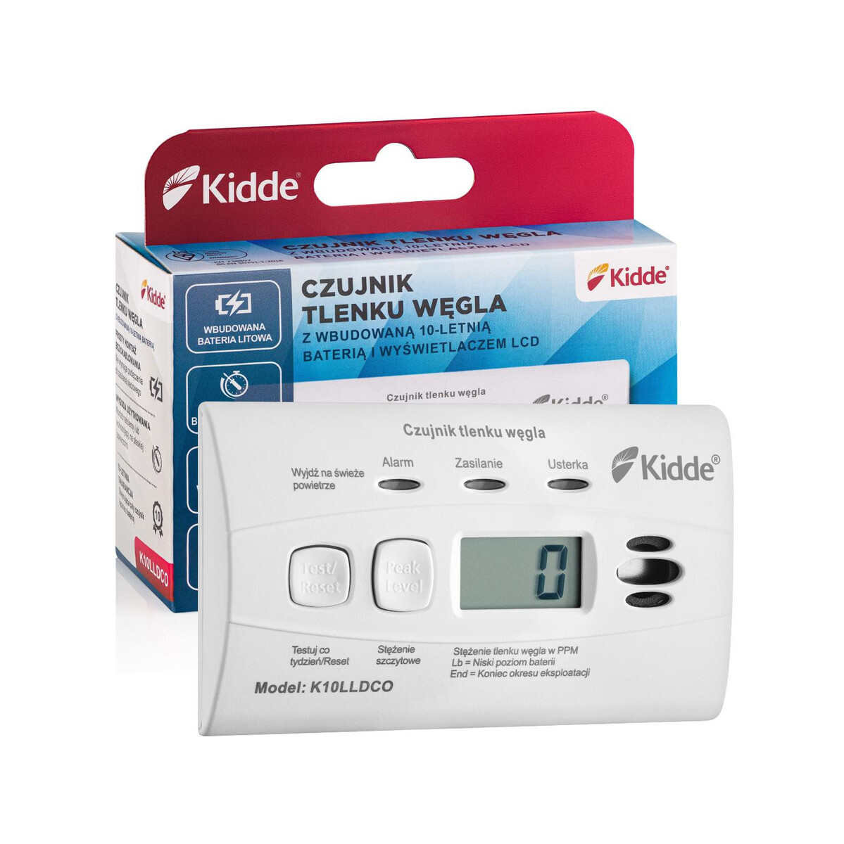 CZUJNIK CZADU Z WYŚWIETLACZEM Kidde K10LLDCO – specyfikacja i dane techniczne detektora: