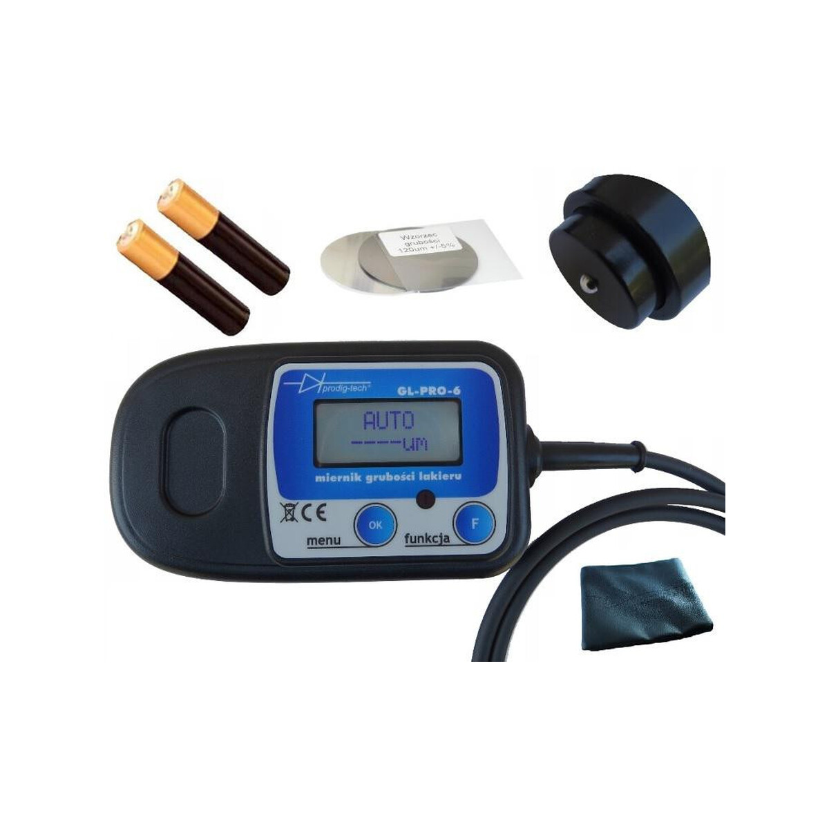Grubościomierz lakieru GL-PRO-6-FAZ , służy do pomiaru grubości warstwy lakieru nałożonej na blachę samochodową stalową i stalową ocynkowaną i aluminiową. Urządzenie automatycznie wykrywa rodzaj podłoża.