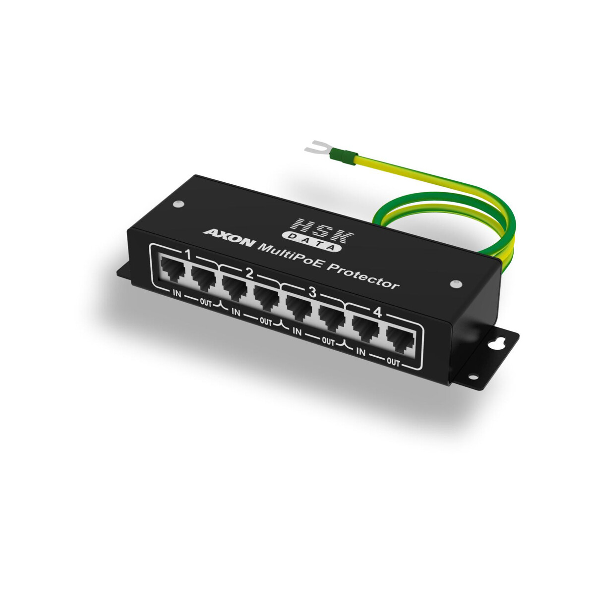 Rodzina AXON PoE MultiNET Protector została zaprojektowana w celu zapewnienia ochrony przeciwprzepięciowej transmisji danych w systemach Ethernet 10/100 Mbps. Jest szczególnie przeznaczona do ochrony modemów, routerów i repeaterów zasilanych zdalnie za pomocą technologii PoE, czyli poprzez niewykorzystane pary przewodów w kablu transmisyjnym. W zależności od wersji, urządzenie posiada 4 lub 12 niezależnych kanałów, zapewniających ochronę zarówno linii sygnałowych, jak i zasilających w jednym urządzeniu.