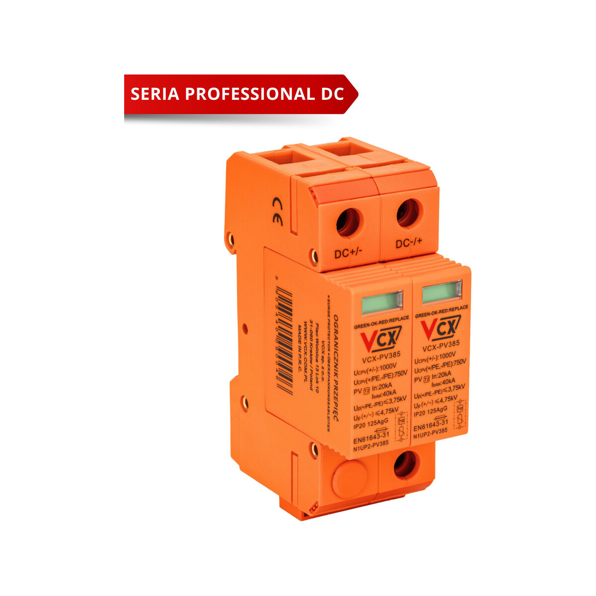Ogranicznik przepięć fotowoltaiczny DC klasy C 2P (T2) 1000V PV 385 VCX