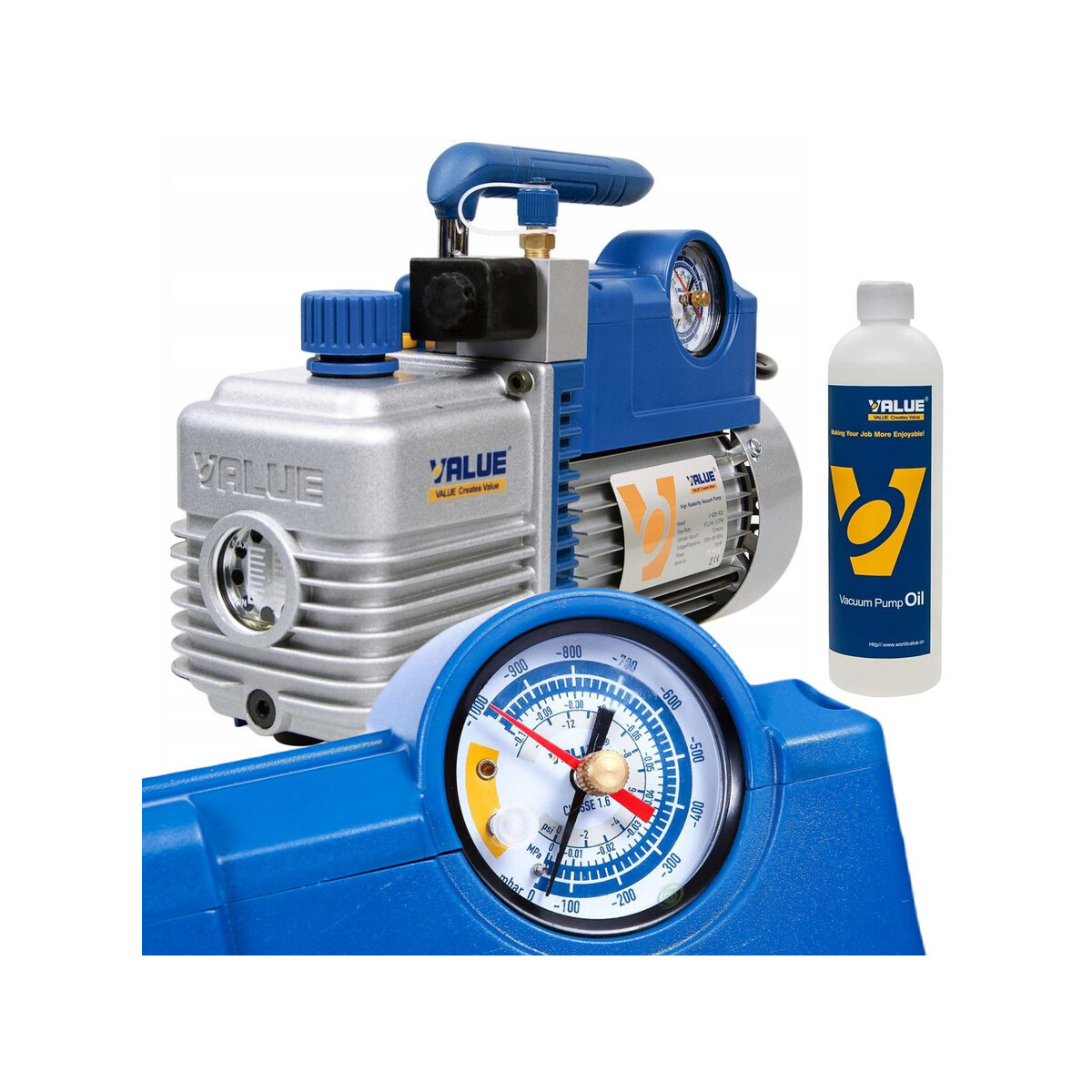 - Model pompy próżniowej VALUE V-i240-R32 jest doskonałym wyborem z uwagi na swoją niezawodność, niewielką wagę (11 kg), kompaktową budowę i precyzyjny wakuometr.