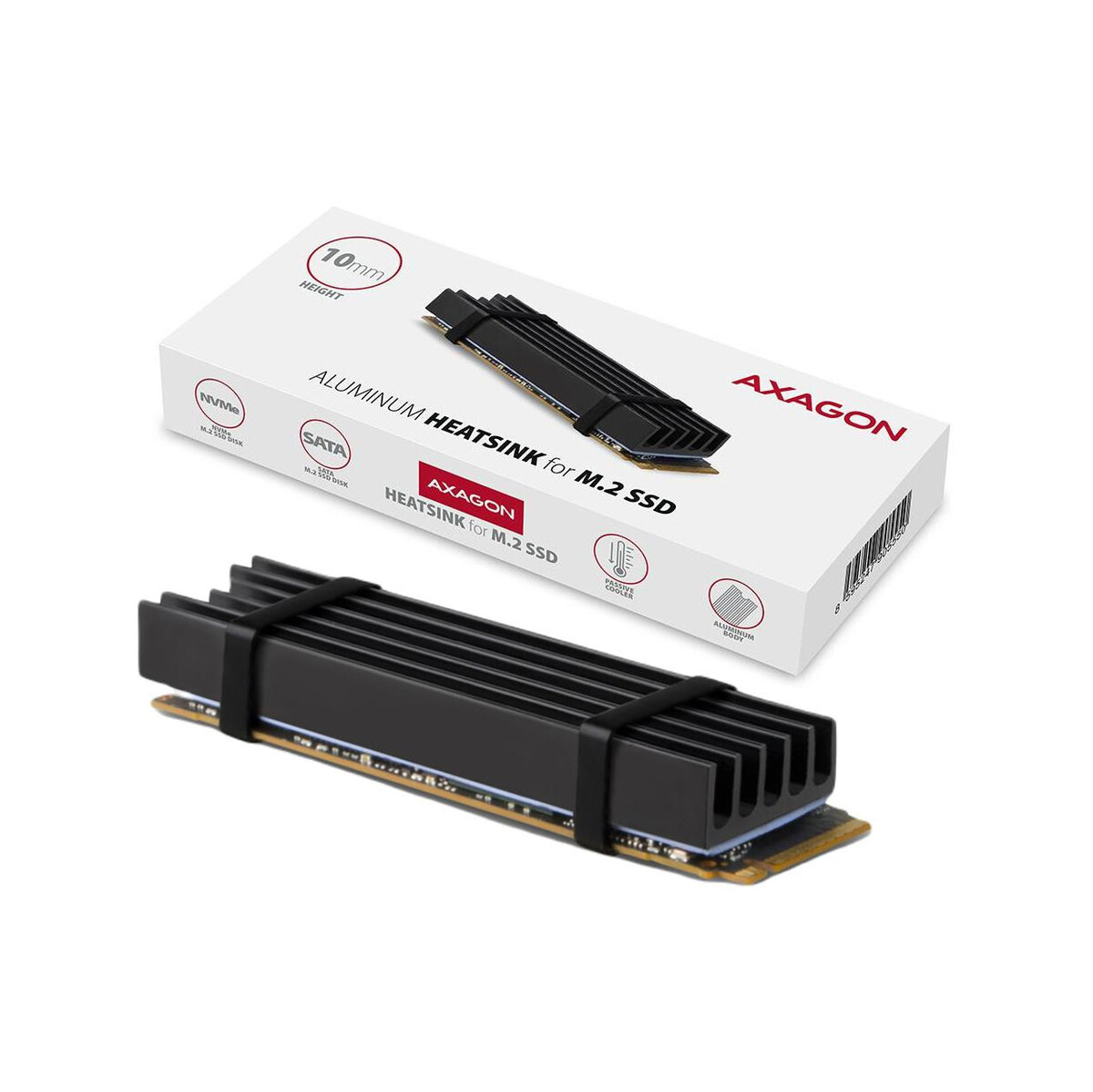 Radiator do dysków Axagon CLR-M2L10 M.2 SSD 10mm – najważniejsze cechy: