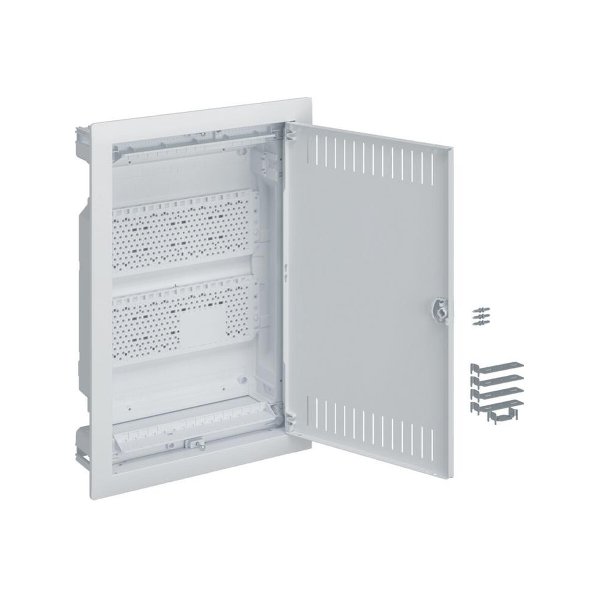 Rozdzielnica podtynkowa multimedialna Hager volta VU24NWB to idealne rozwiązanie do organizacji okablowania i urządzeń multimedialnych w domu lub mieszkaniu. Wyposażona w perforowane płyty montażowe. Cechuje ją łatwość montażu, posiada wbudowaną poziomicę, ramkę maskującą nierówności tynku oraz elementy mocujące. Zapewnia maksymalne bezpieczeństwo (II klasa ochronności, IP30). Dostarczana z stalowymi wentylowanymi drzwiami.
