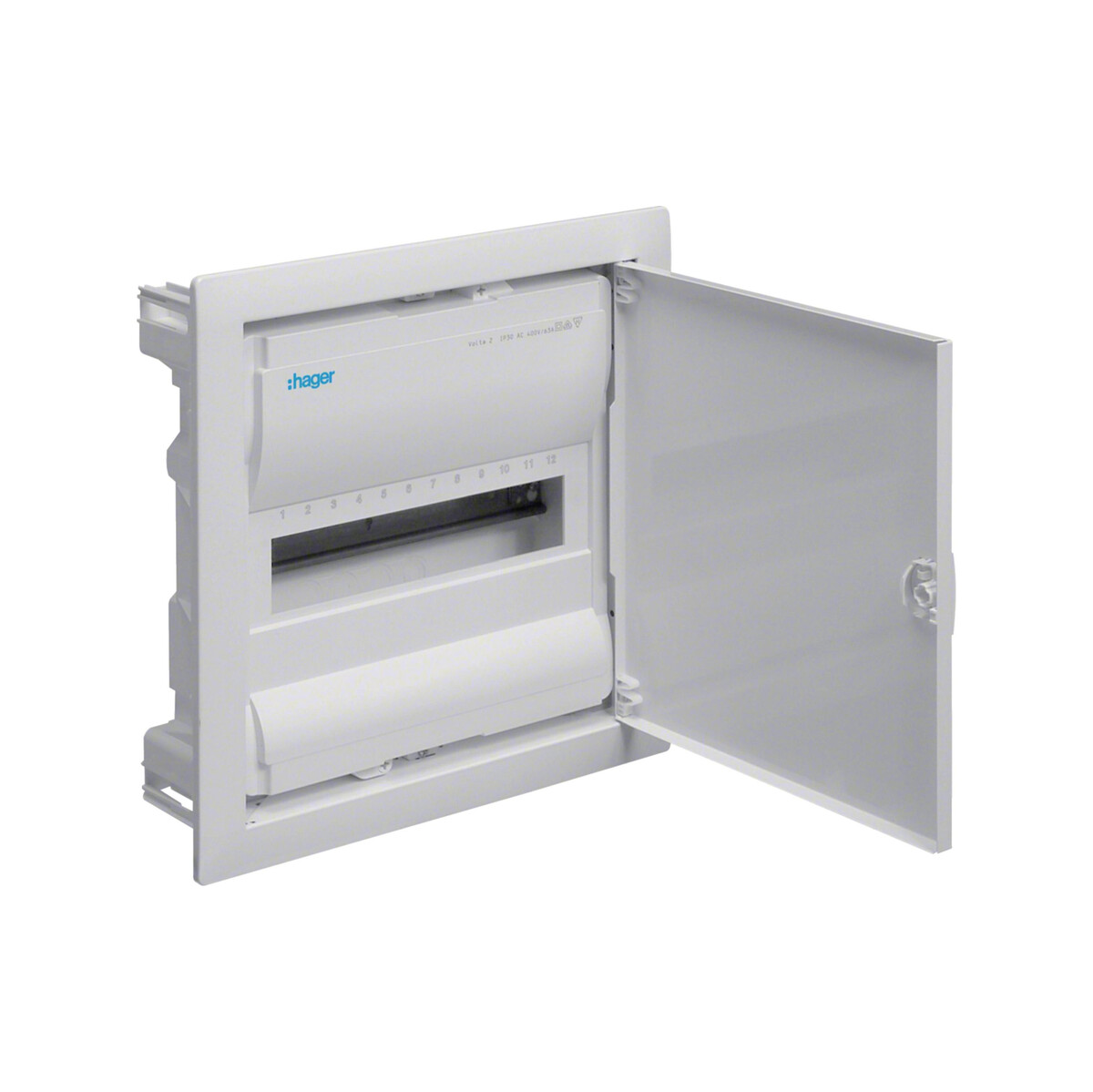 Rozdzielnica podtynkowa z drzwiami metalowymi, 1 rząd, 12 modułów, IP30, HAGER Volta VU12NE