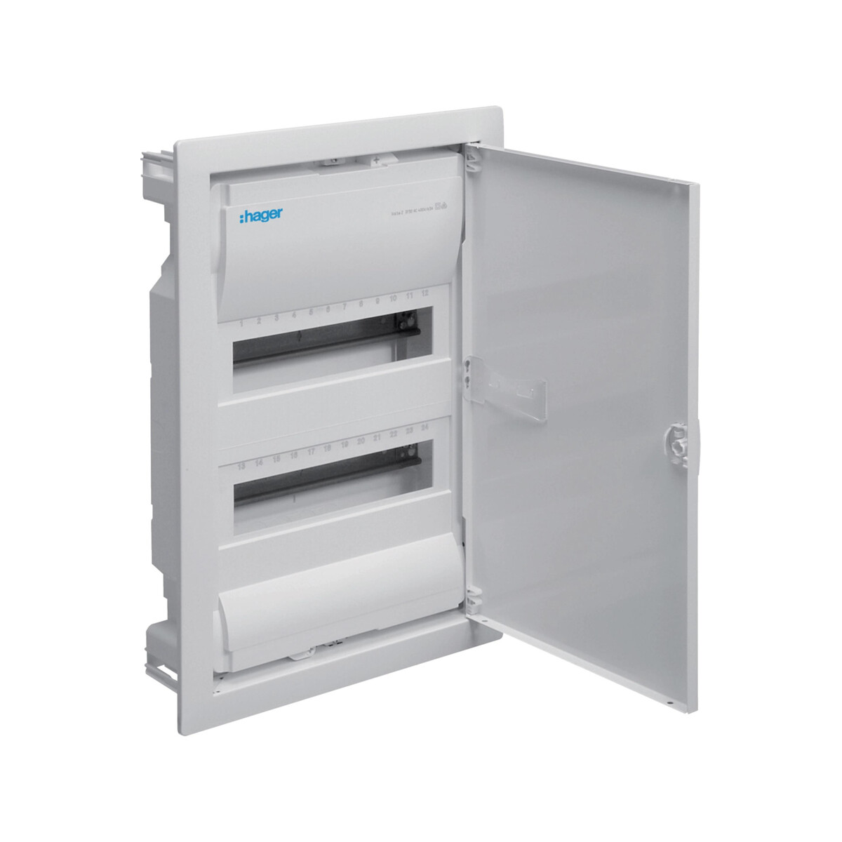 Rozdzielnica podtynkowa z drzwiami metalowymi, 2 rzędy, 24 moduły, IP30, HAGER Volta VU24NE