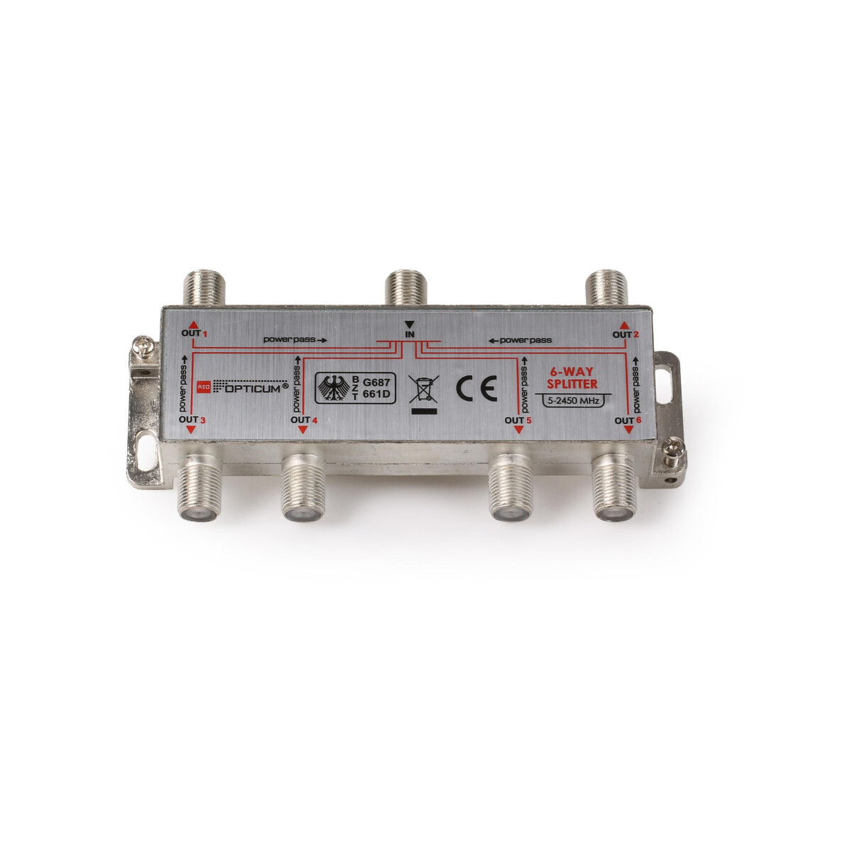 Rozgałęźnik sześciokrotny przeznaczony dla DVB-T/T2, DVB-S2, do użytku wewnętrznego.