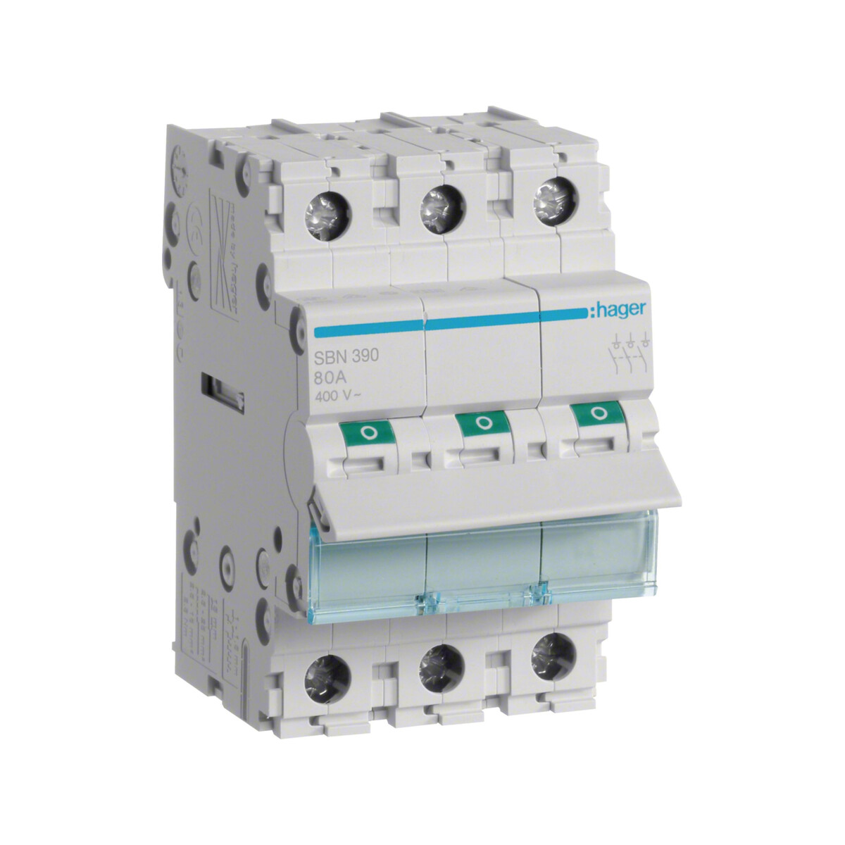 Rozłącznik izolacyjny, szer. 3 moduły. 3P, 100A HAGER SBN390