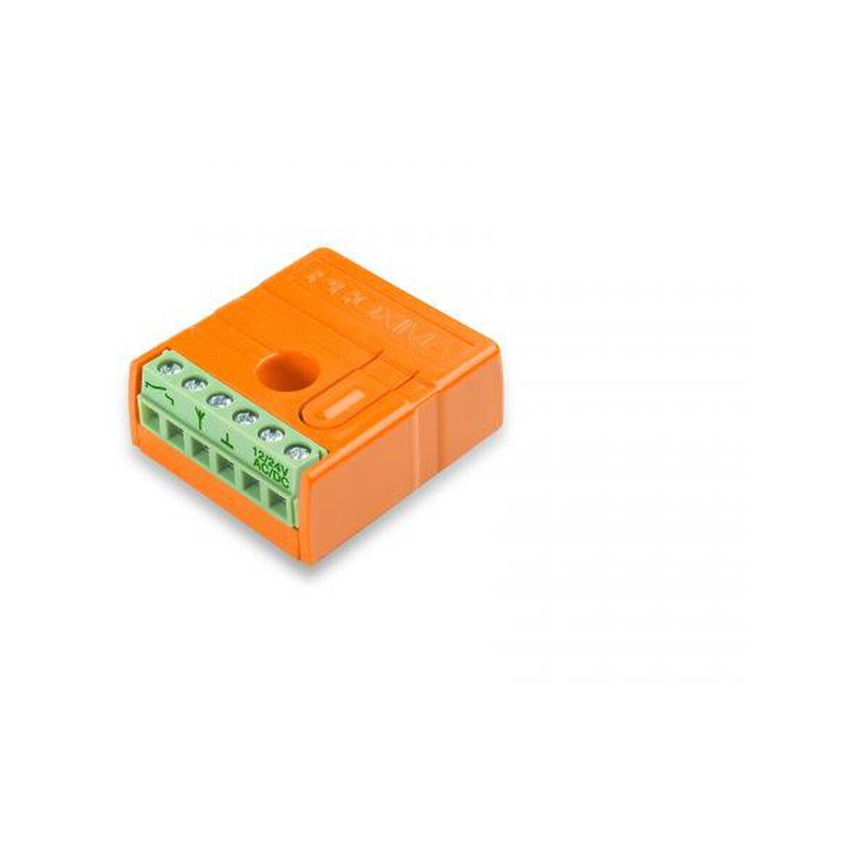 PROXIMA NM to uniwersalny jednokanałowy odbiornik, zasilany napięciem od 12 do 24V AC/DC. Współpracuje on zmiennokodowo z pilotami PROXIMA na częstotliwości 433,92MHz, jednakże może być kompatybilny z pilotami innych producentów, których piloty oparte są na systemie KeeLoq 433,92MHz. Urządzenie dedykowane do sterowania dowolnymi napędami bram i nie tylko.