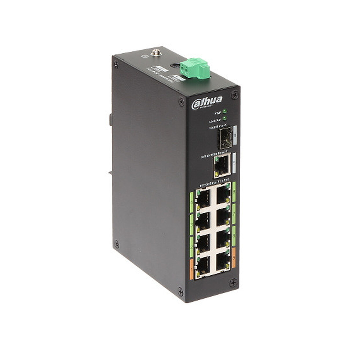 Switch PoE DH-LR2110-8ET-120 to urządzenie typu przemysłowego zapewniające płynną transmisję sieciową z prędkością 10 / 100 / 1000 Mbps. Urządzenia tego typu mogą być stosowane w instalacjach realizowanych w obiektach przemysłowych w niekorzystnych warunkach takich jak wysoka lub niska temperatura.