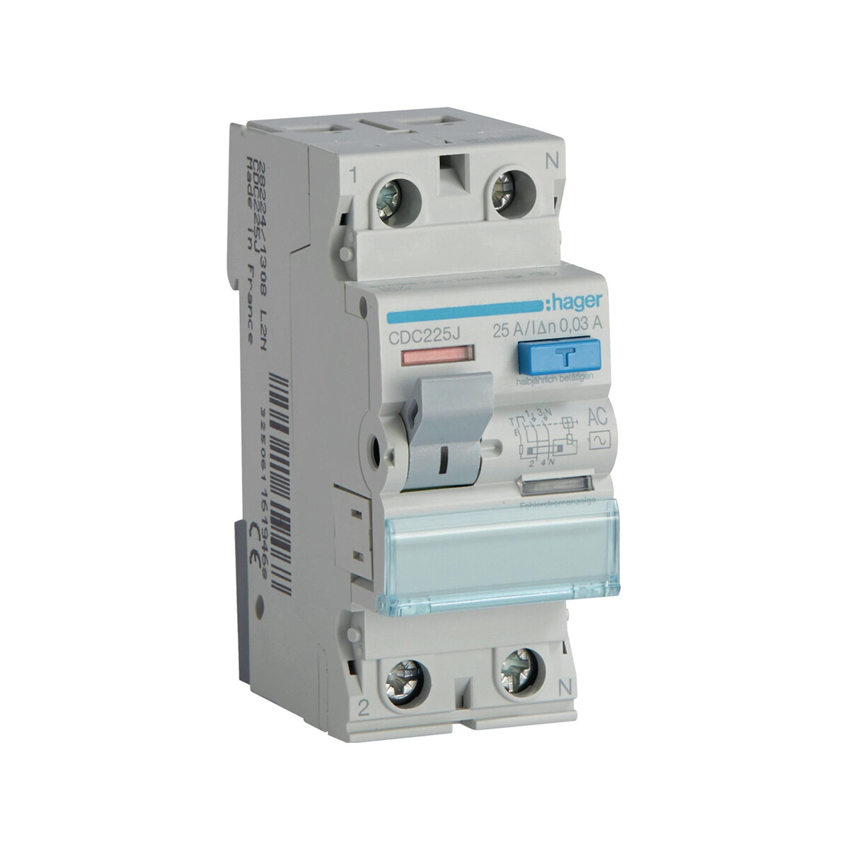 Wyłącznik różnicowoprądowy 1P+N 25A 30mA 6kA AC HAGER CDC225J