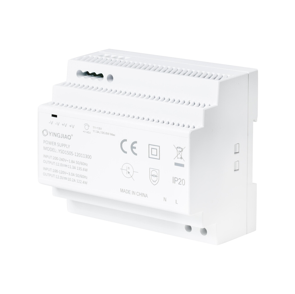 ZASILACZ IMPULSOWY NA SZYNĘ DIN YINGJIAO YSD150S-12011300 12V/136W/11,3A – DANE TECHNICZNE: