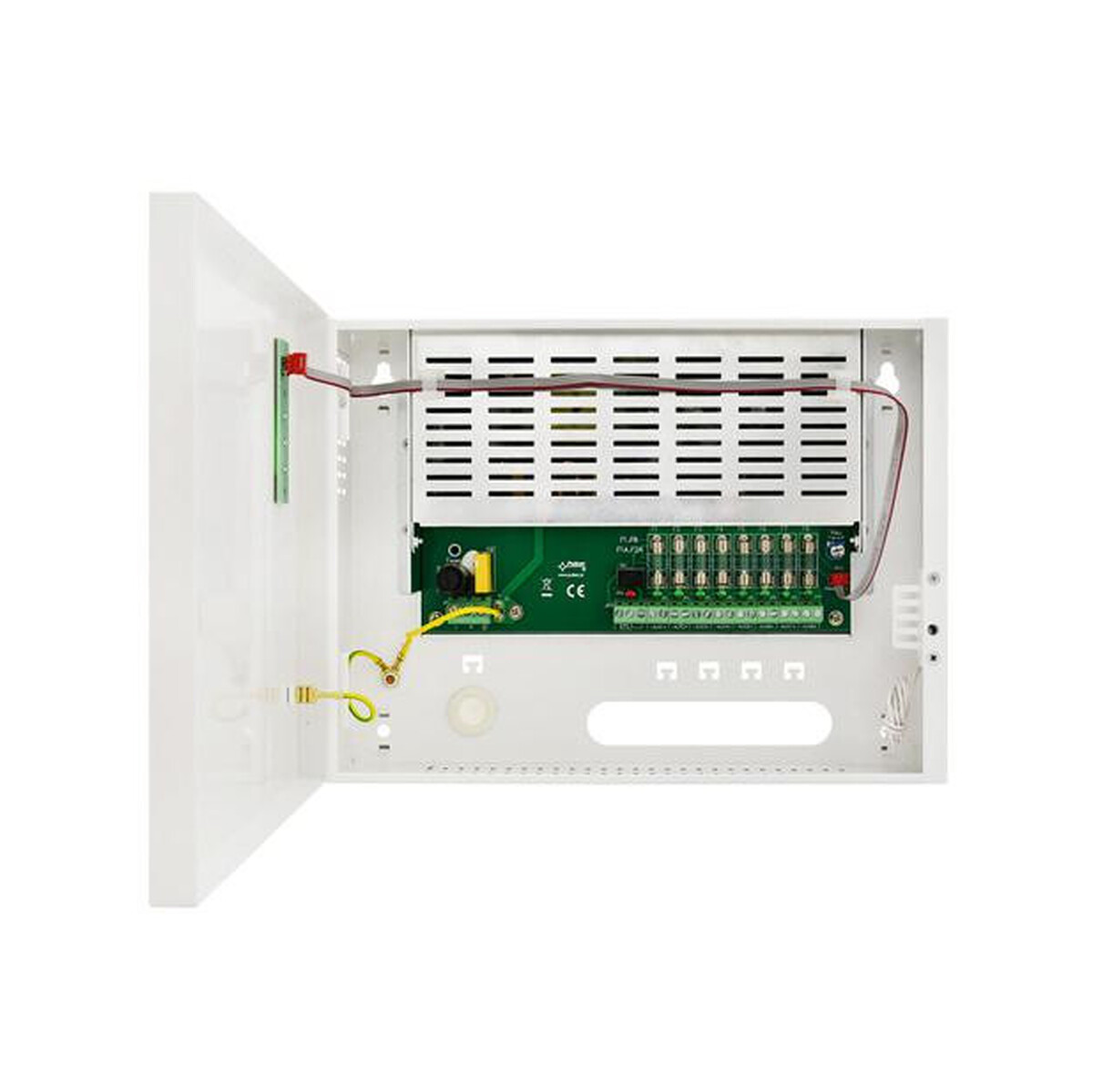 Zasilacz stabilizowany HPSDC-12V8X1A to zastępujący w portfolio producenta model PSDC08128T, przeznaczony do zasilania urządzeń CCTV wymagających stabilizowanego napięcia o wartości 12V DC. Zakres regulacji napięcia wyjściowego regulowany jest potencjometrem w zakresie 12,0V÷15,0V DC. Zasilacz posiada 8 wyjść zabezpieczonych niezależnie bezpiecznikami topikowymi. Awaria (zwarcie) w obwodzie wyjścia spowoduje przepalenie bezpiecznika topikowego i odłączenie obwodu od zasilania DC (+U). Zasilacz umieszczony jest w obudowie metalowej z panelem sygnalizacyjnym.