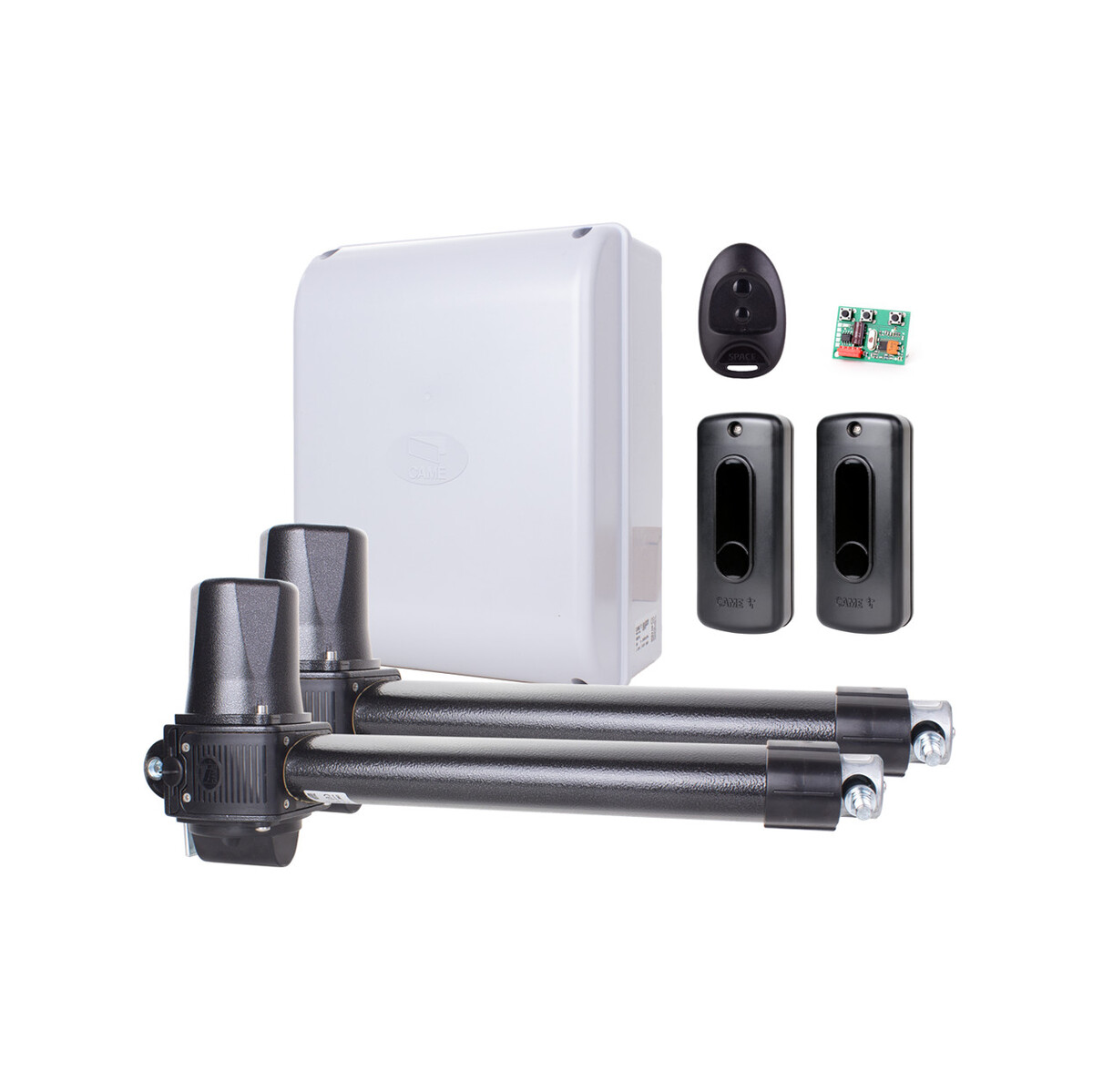 Kompletny zestaw CAME KRONO Plus SPACE z centralą sterującą ZF1N do zautomatyzowania bramy dwuskrzydłowej o długości skrzydła do 3 metrów i masie skrzydła aż do 800kg!* Zestaw z wbudowanymi wyłącznikami krańcowymi – nie wymaga odbojników i stopera centralnego.*