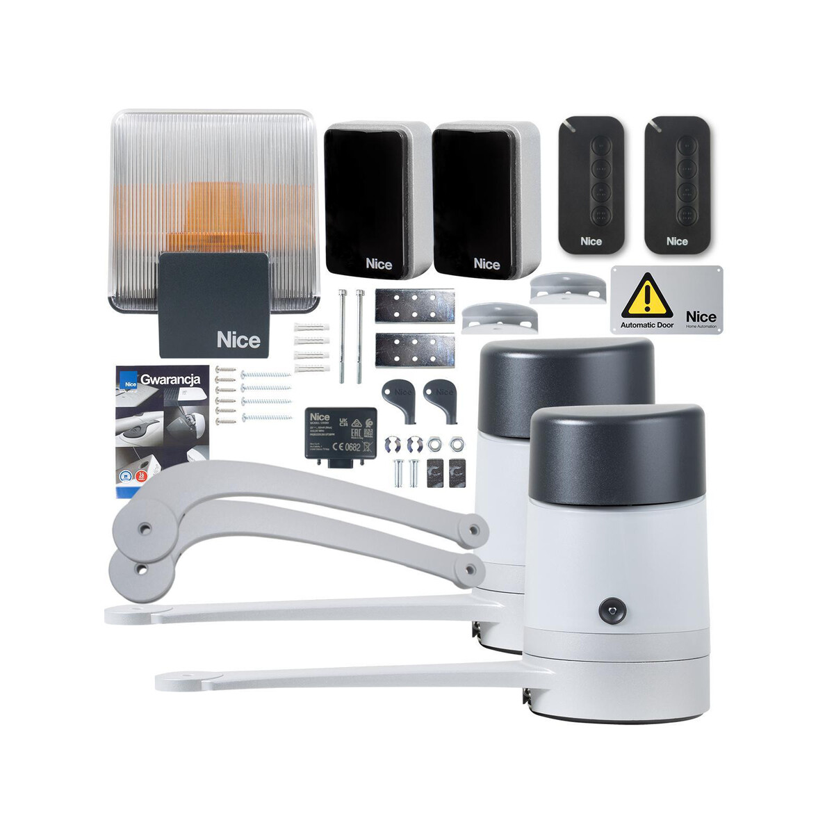 Zestaw NICE HOPP to kompletne rozwiązanie, dedykowane do automatyzacji bram skrzydłowych o długości skrzydła do 2,4 metra i wadze do 250kg. Idealnie sprawdzi się do zautomatyzowania bramy osadzonej na szerokich murowanych słupkach.