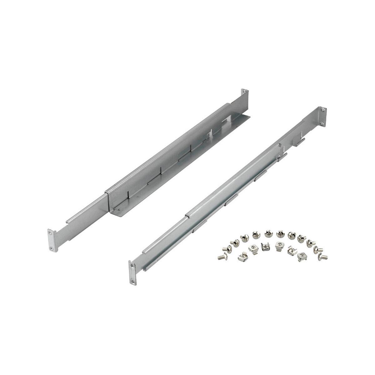 - Package Content: Rack rails left and right (2 parts each side), Rack-screws (12x M6*16, Nuts (4x), washer plate (2x), washer spring (2x M6), installation guide